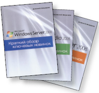 Книги (Алексей Федоров, «Windows Server 2008, Visual Studio 2008, SQL Server 2008, Краткий обзор ключевых новинок», — изд-во «Русская Редакция», 2008 г. — 175, 175 и 127 стр.) распространяются «Майкрософт Рус».