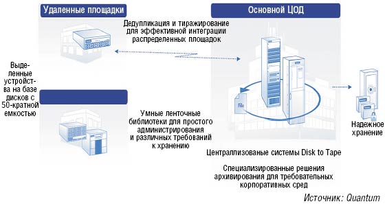Рисунок 2. Для успешного администрирования данных на множестве площадок необходимо интеллектуальное взаимодействие дисковых и ленточных систем хранения.