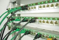 Для управления коммутационными шнурами предлагается новое решение на базе RFL. Оно может применяться как в новой инсталляции, так и с уже проложенной информационной проводкой и не требует применения специальных коммутационных панелей. Система, которую мы рассмотрим ниже, разработана компанией data-complex. Продукт позволяет выполнять прямое считывание данных о соединениях на всех портах установленного в стойке оборудования любых разновидностей (концентраторов, маршрутизаторов, коммутаторов, телефонных станций и пассивных коммутационных панелей). Система контролирует все без исключения разъемные соединения в области своего действия; тип соединения (оптическое или медножильное) не имеет значения. Полученные данные с помощью шины консолидируются сначала в шкафном контроллере, а затем по локальной (локальный филиал) или глобальной сети (удаленные филиалы) передаются на консоль управления для сбора и обработки.