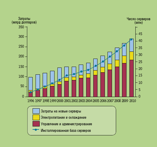 Виртуализация серверных платформ (абстрагирование их аппаратной части для создания и выполнения виртуальных машин, ВМ) и ресурсов (организация пула аппаратных средств для автоматичес-кого распределения и совместного использования) помогает преодолеть наиболее острые проблемы ЦОД — повысить эффективность загрузки оборудования и управления ресурсами, снизить энергопотребление, упростить и ускорить развертывание новых сервисов, разработку и тестирование продуктов, сократить затраты на администрирование, повысить уровень доступности систем. Технология виртуализации стала наиболее важной инновацией в сегменте стандартных серверов за последнее десятилетие, однако их архитектура данные возможности изначально не предусматривала, поэтому развитие виртуализации представляет собой эволюционный процесс с разными вариантами ее реализации — программными, аппаратными или программно-аппаратными средствами.