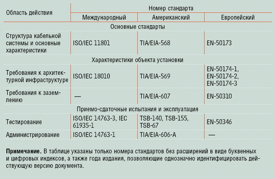 Следует отметить, что в обозримой перспективе положение дел вряд ли изменится: полномасштабное производство всей номенклатуры компонентов, с помощью которых формируются тракты передачи СКС, не является приоритетным на отраслевом уровне, не говоря уже про государственный. В этой ситуации целесообразнее воспользоваться международным разделением труда и удовлетворять потребности народного хозяйства за счет импортных поставок хотя бы части номенклатуры элементной базы. Соответственно, в качестве нормативных следует использовать профильные зарубежные публикации. Их функции выполняют преимущественно англоязычные оригинальные документы или переводы на английский с других языков.