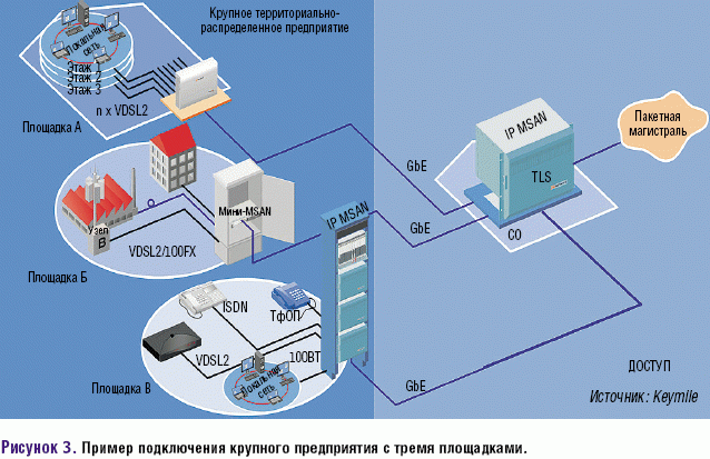 Рисунок 3. Пример подключения крупного предприятия с тремя площадками.