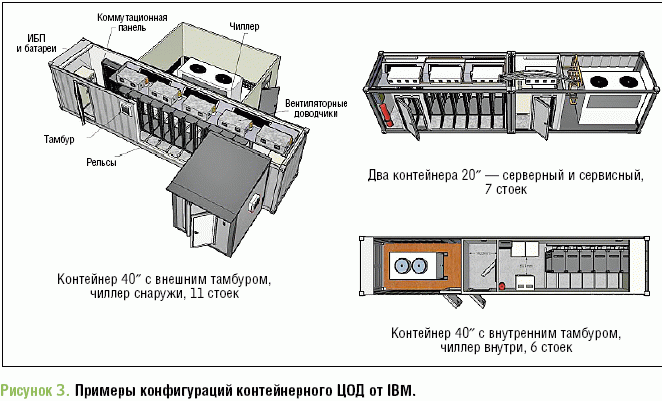 Рисунок 3. Примеры конфигураций контейнерного ЦОД от IBM.