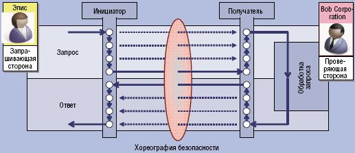 Для осуществления контактов между клиентом и сервисом — не только рабочих, но и связанных с вопросами обеспечения безопасности — требуется реализовать согласованные действия. На профессиональном языке описание этих мер в отношении используемых механизмов безопасности и порядка их выполнения называется «хореографией безопасности».