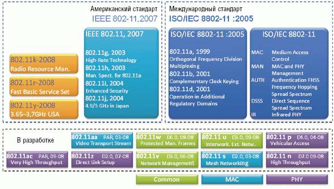 Рисунок 2. IEEE 802.11 – Wireless LAN: стандарты и проекты.