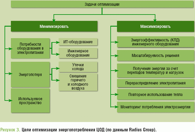 Рисунок 3. Цели оптимизации энергопотребления ЦОД (по данным Radius Group).