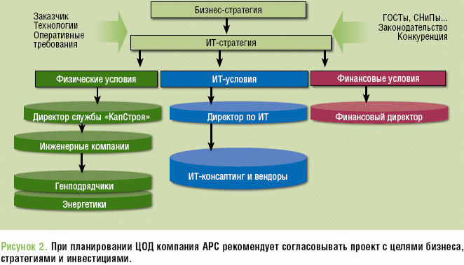 Как подчеркивает Олег Письменский, нередко задачи бизнеса и конечная реализация значительно расходятся, поэтому важно грамотное планирование ЦОД (Рисунок 2). Для этого необходима культура управления финансами (эффективность инвестиций), реализации инженерных систем (выбор архитектуры и топологии) и управления проектами, от которой на 80% зависит успех. Кроме того, не обойтись без эффективного взаимодействия подразделений компании (бизнеса и ИТ), правильного обоснования проекта, изучения отраслевых примеров, помогающих оценивать результаты. От эффективности управления проектом, квалифицированного применения тех или иных решений зависит и финансовая эффективность.