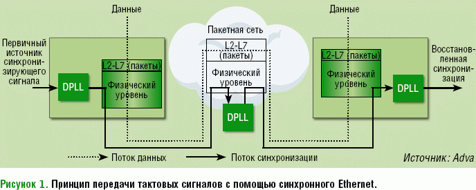 Рисунок 1. Принцип передачи тактовых сигналов с помощью синхронного Ethernet.
