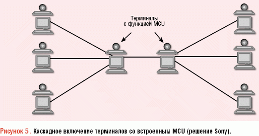 Рисунок 5. Каскадное включение терминалов со встроенным MCU (решение Sony).