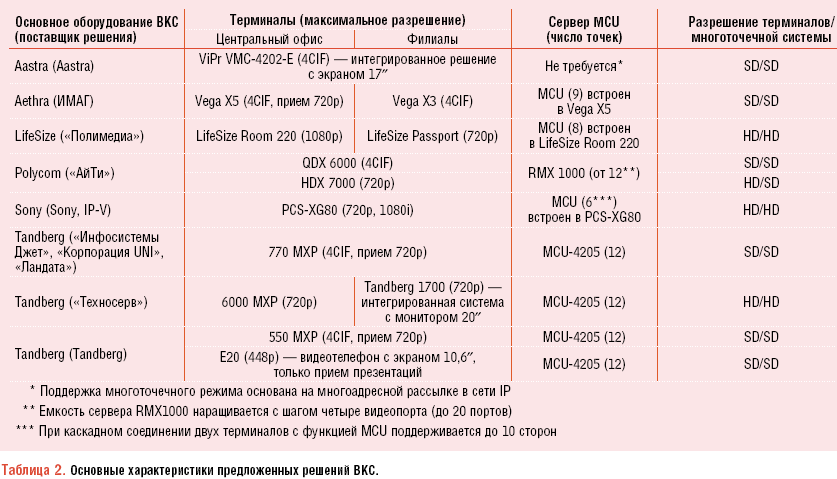 Вариант со стандартным качеством предпочли большинство разработчиков проекта (см. Таблицу 2). Компания «АйТи» просчитала два варианта: SD и HD. Впрочем, нашлись и те, кто сделал выбор в пользу оборудования, обеспечивающего качество HD в многоточечном сеансе видеосвязи, — «Техносерв» и «Полимедиа». Наконец, Sony и ее партнер «АйПи-Ви» (IP-V) предложили терминалы с поддержкой HD, однако рекомендованные средства организации многоточечной видеоконференции (MCU) не поддерживают такое разрешение, поэтому в данном случае покупка систем HD — это выбор на перспективу.
