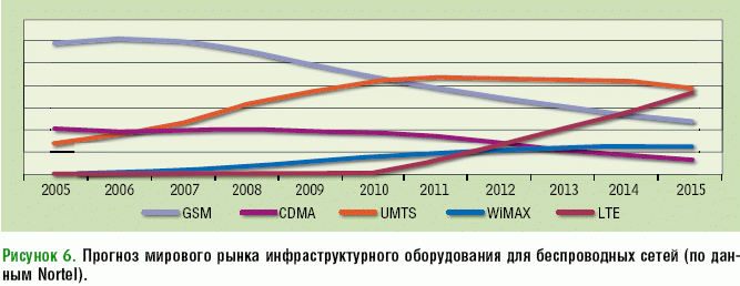 Рисунок 6. Прогноз мирового рынка инфраструктурного оборудования для беспроводных сетей (по данным Nortel).