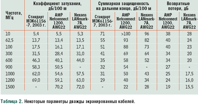 Таблица 2. Некоторые параметры дважды экранированных кабелей.