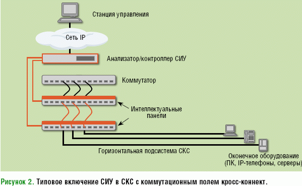 Рисунок 2. Типовое включение СИУ в СКС с коммутационным полем кросс-коннект.