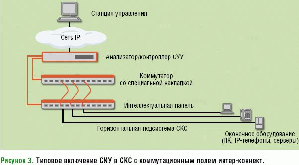 Рисунок 3. Типовое включение СИУ в СКС с коммутационным полем интер-коннект.
