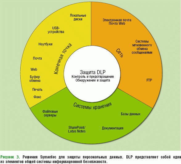 Рисунок 3. Решения Symantec для защиты персональных данных. DLP представляет собой один из элементов общей системы информационной безопасности.