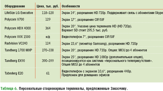 Таблица 6. Персональные стационарные терминалы, предложенные Заказчику.