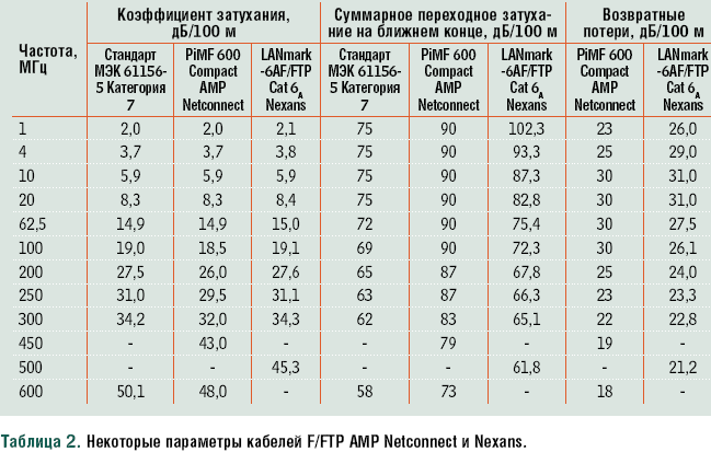Таблица 2. Некоторые параметры кабелей F/FTP AMP Netconnect и Nexans.