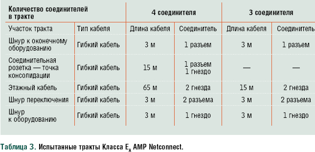 Таблица 3. Испытанные тракты Класса EA AMP Netconnect.