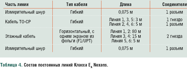 Таблица 4. Состав постоянных линий Класса EA Nexans.