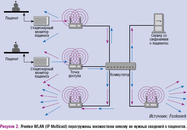 Рисунок 2. Ячейки WLAN (IP Multicast) перегружены множеством никому не нужных сведений о пациентах.