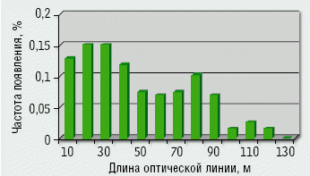 | Рисунок 1. Распределение длин магистральных оптических линий СКС. |