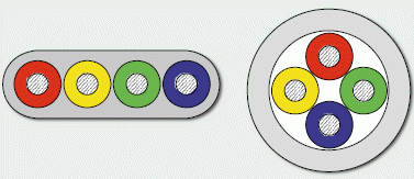 Практическое освоение нового диапазона скоростей требует создания новых разновидностей кабелей. Существующие распределительные кабели внутренней прокладки мало пригодны для данной цели. Из-за большого разброса длин отдельных световодов они не позволяют добиться нужной величины перекоса задержки (Skew) — менее 0,75 нс/100 м. Один из путей достижения желаемой величины Skew состоит в применении кабелей, конструкция которых обеспечивает жесткий контроль механической длины отдельных волокон. Этим требованиям изначально отвечают ленточные световоды (см. Рисунок 3). 4 и 12-волоконные ленточные световоды, необходимые для 40/100-гигабитных систем, заимствуются из техники сетей связи общего пользования, где они успешно применяются при создании магистральных кабелей. В данном случае использование 12-волоконных лент вместо 10-волоконных оправдано соображениями унификации.