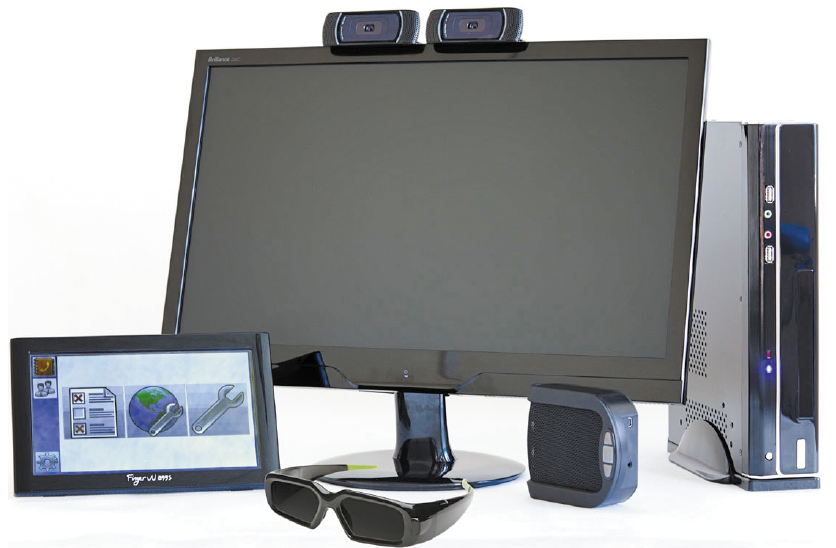 | Добавляя измерение. Комплекс TrueConf 3D имеет все шансы стать первым в России коммерческим ВКС-решением 3D. Помимо монитора, 3D-камеры с двумя объективами, затворных очков NVIDIA и спикерфона на фото представлены сенсорная панель управления комплексом (слева) и кодек-терминал ВКС (справа). |