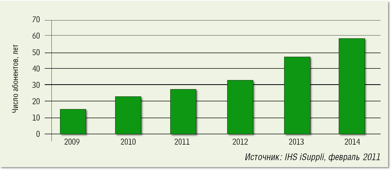 По оценкам HIS iSuppli, по всему миру в 2010 году более 23 млн человек стали пользоваться VDSL2, а уже в 2014 году к сетям VDSL2 будут ежедневно подключаться 165 тыс. новых абонентов (см. Рисунок 1). Двигателями нынешнего этапа освоения Интернета становятся файлообменные сети, онлайновые игры и IP-телевидение высокой четкости (около 20 Мбит/с на канал ТВЧ с разрешением 1080p). В ближайшие несколько лет нормой станут скорости доступа в Интернет на уровне 50–100 Мбит/с, которые полностью соответствуют возможностям VDSL2 — при условии, что уличный шкаф с коммутаторами VDSL2 находится не более чем в 300–500 метрах от абонента.