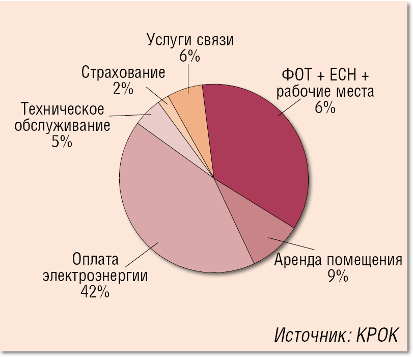 | Рисунок 1. Структура затрат на стойку ЦОД. |