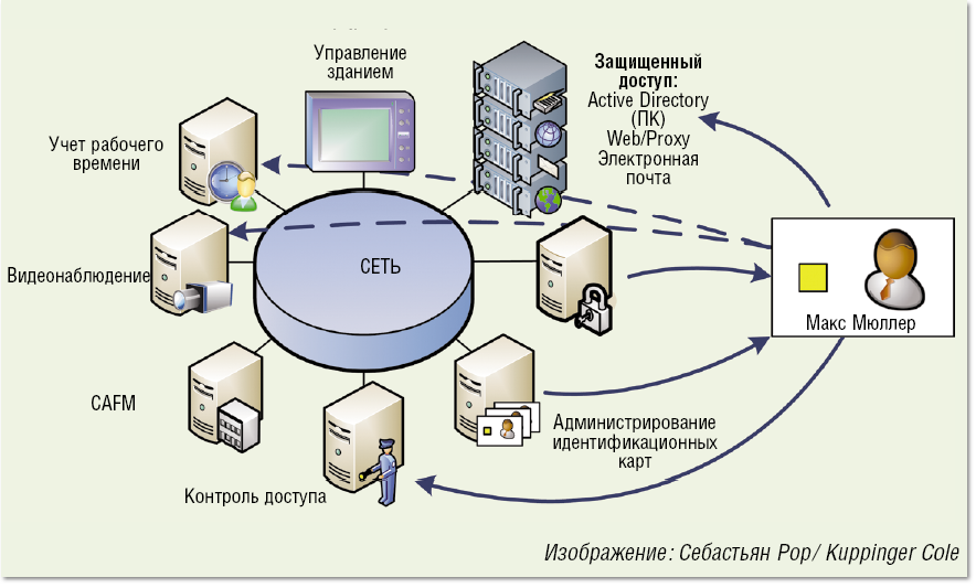 | Рисунок 2. Применение конвергенции на практике: сотрудник пользуется единственной идентификационной картой для выполнения всех действий на предприятии. |