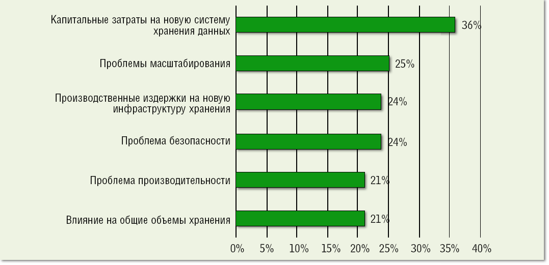 | Рисунок 3. По данным опроса DataCore, с точки зрения инфраструктуры хранения к наиболее серьезным затратам при виртуализации серверов заказчики относят покупку новой СХД. |