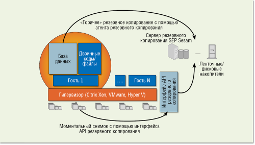 VMware, Citrix XenServer и Hyper-V предоставляют интерфейсы API резервного копирования, с помощью которых можно создавать резервные копии гостевых систем через гипервизор: