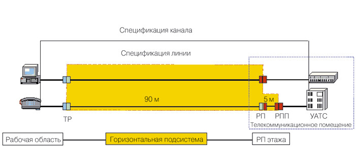 | При использовании СКС и технологии Ethernet предусматриваются ограничения на длину как горизонтальной, так и коммутационной части. |