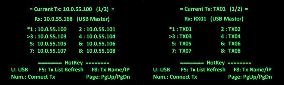 | Два представления OSD меню, с выбором устройства по IP адресу или имени. |