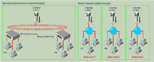 Концепция кластеризации базы данных предполагает, что централизованные данные распределяются по нескольким более мелким серверам, расположенным в местах наибольшей концентрации пользователей. Благодаря приближению сервера к рабочим группам на уровне предприятия уменьшаются время реакции и количество передаваемой по сети информации. Используя такую архитектуру, необходимо разрабатывать сети и программы одновременно.