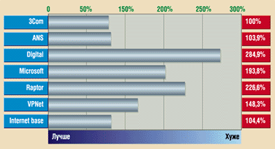 Усредненные результаты тестов на производительность (в процентах от скорости 3Com)