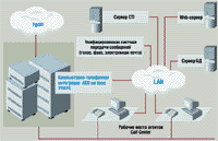Заметим, что система COREX-L, построенная на базе технологии Time-Devision Multiflexing, поддерживает коммутацию голоса, видео и данных (мультимедиа) и способна выступать в качестве платформы приложений. COREX-L обеспечивает интерфейс с ЛС и ряд дополнительных функций (HOTEL, VMS, FMS, Call Ceter), в том числе для корпоративных коммутационных сетей. Благодаря поддержке технологии компьютерного обслуживания (CTI Computer Telephony Integration) системы COREX-L применяются в качестве сервера компьютерной телефонии, обеспечивая не только интерактивный голосовой ответ через IVR, но и доступ к ODBC-совместимым БД, а также интеграцию с Internet (на уровне службы обратного вызова - Callback Service) (рис. 2).