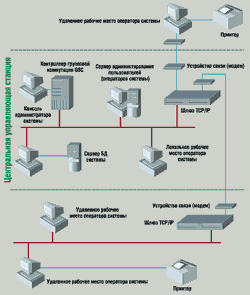 Система оснащена и другим дополнительным оборудованием (рис. 1). Так, отдельные службы системы управления объединены в ЛС с распределенной архитектурой на базе каналов Ethernet (10Base-T) с единой системой управления и администрирования, работающую в среде Windows NT. В состав ЛС входят рабочие места администраторов, которые через коммутатор и маршрутизатор могут подключаться к глобальной сети по каналам frame relay, обеспечивая функции управления в других зонах. Для передачи речевого трафика в другие зоны коммутаторы речевых каналов связаны линиями Е1. В качестве управляющих подсистем Omnilink используются следующие пакеты ПО: