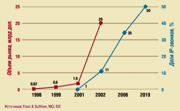Рисунок 6. Прогнозируемый рост объема рынка и доли IP-звонков.
