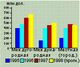 ![]() Рис. 1. Доходы от предоставления услуг электросвязи в Москве за 1995-1998 гг. |