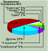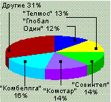 ![]() Рис. 6. Распределение московского рынка услуг междугородной связи (альтернативные операторы) |