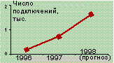 Услуги ISDN реально появились в Москве лишь во второй половине 1994 г. Сегодня техническую возможность и желание предоставлять услуги ISDN имеют многие операторы, однако реальное число пользователей пока невелико, поскольку массовый потребительский спрос еще не сформирован. Число подключений не превышает 2 тыс. (рис. 7).