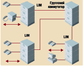 Модульная архитектура MD110 (рис. 1) позволяет быстро наращивать емкость сети. Система построена на основе так называемых LIM-ов (Line Interface Module), каждый из которых оснащен собственным процессором и обслуживает абонентов в своем коммутационном поле. Максимальное число пользователей, поддерживаемых одной станцией, — более 20 тыс.