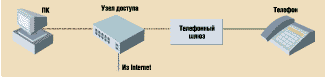 | Рис. 1. Переадресация телефонного вызова на телефонный шлюз во время работы в Internet |