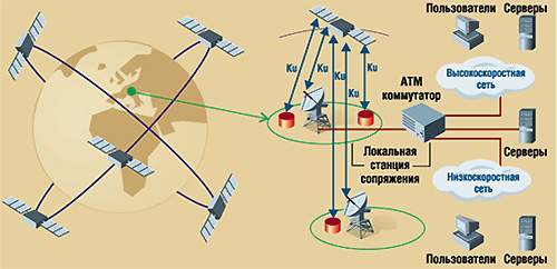 SkyBridge - это глобальная система персональной спутниковой связи, обеспечивающая широкополосный доступ по асимметричному спутниковому каналу. Ее спутниковый сегмент строится на низких круговых орбитах, что позволяет использовать для связи небольшие антенны и гарантирует малые задержки при распространении сигналов. Последнее обстоятельство особенно важно, так как делает систему совместимой с наземными сетями связи, где интерактивные услуги предоставляются в реальном времени.