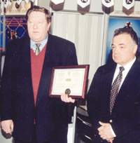 | Заместитель председателя Госкомитета России по связи и информатизации Николай Пожитков (в центре) вручает генеральному директору ЗАО "Самарская кабельная компания" Анвару Бульхину (на фото справа) сертификат соответствия системы качества компании требованиям стандарта ISO 9002 |