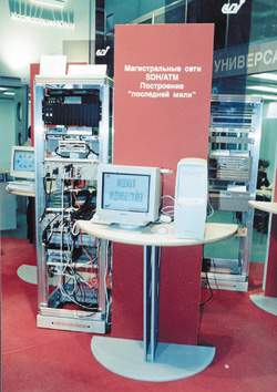 | Раздел экспозиции "Построение последней мили". Слева на фото -- стенд xDSL-технологий |