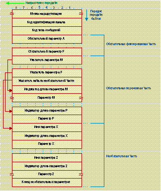 Длина сообщения ISUP (рис. 12), включая заголовки подсистемы МТР3, является переменной; ее максимальное значение равно 272 байтам. Каждое сообщение имеет метку маршрутизации, идентифицирующую исходящий пункт и пункт назначения, код идентификации канала (Circuit Identification Code, CIC) и код типа сообщения, однозначно определяющий функциональное назначение и структуру каждого сообщения ISUP. Тип сообщения задает позицию, длину и порядок расположения параметров в обязательной (фиксированной) части сообщения. За этой частью следуют указатели на обязательные параметры фиксированной длины и необязательные параметры переменной длины. Первые определяются индикатором длины и содержимым параметра, а вторые — еще и именем параметра.