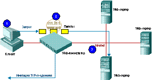 Работа Web-коммутаторов начинается с того, что они перехватывают весь трафик, адресованный на определенный Web-узел, получая, таким образом, возможность отслеживать запросы и предсказывать ожидаемое превышение нагрузки до того, как серверы окажутся перегруженными.