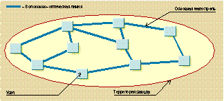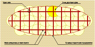 Принцип наложения сетки информационных магистралей на территорию предприятия и используемые при этом понятия поясняет рис. 1.